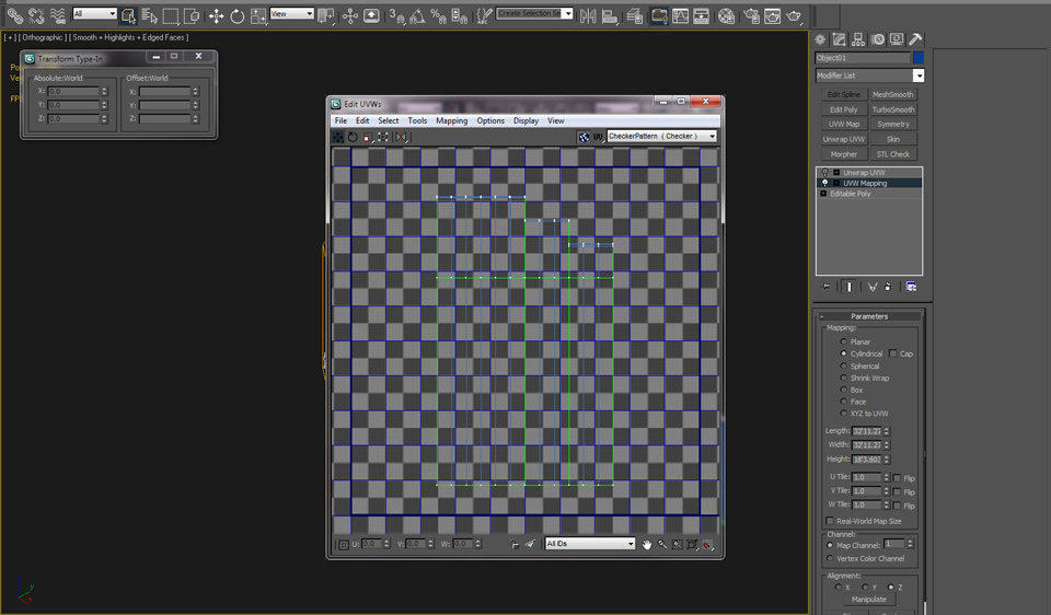 Apply a checker material to the object and tile the checkers as needed to view the UV stretching. Adjust the UVs accordingly and begin to position them in the UV 0 to 1 space.